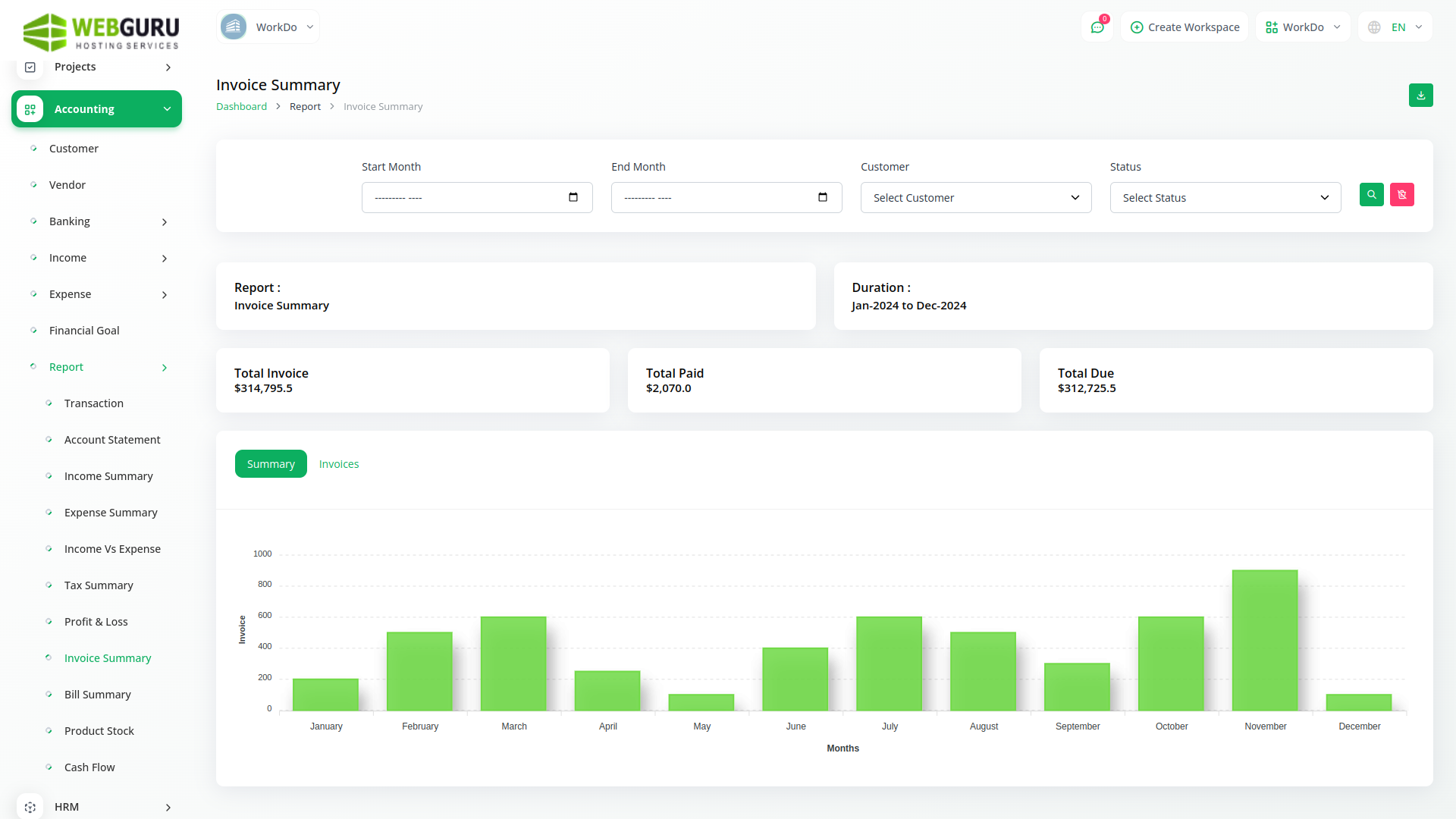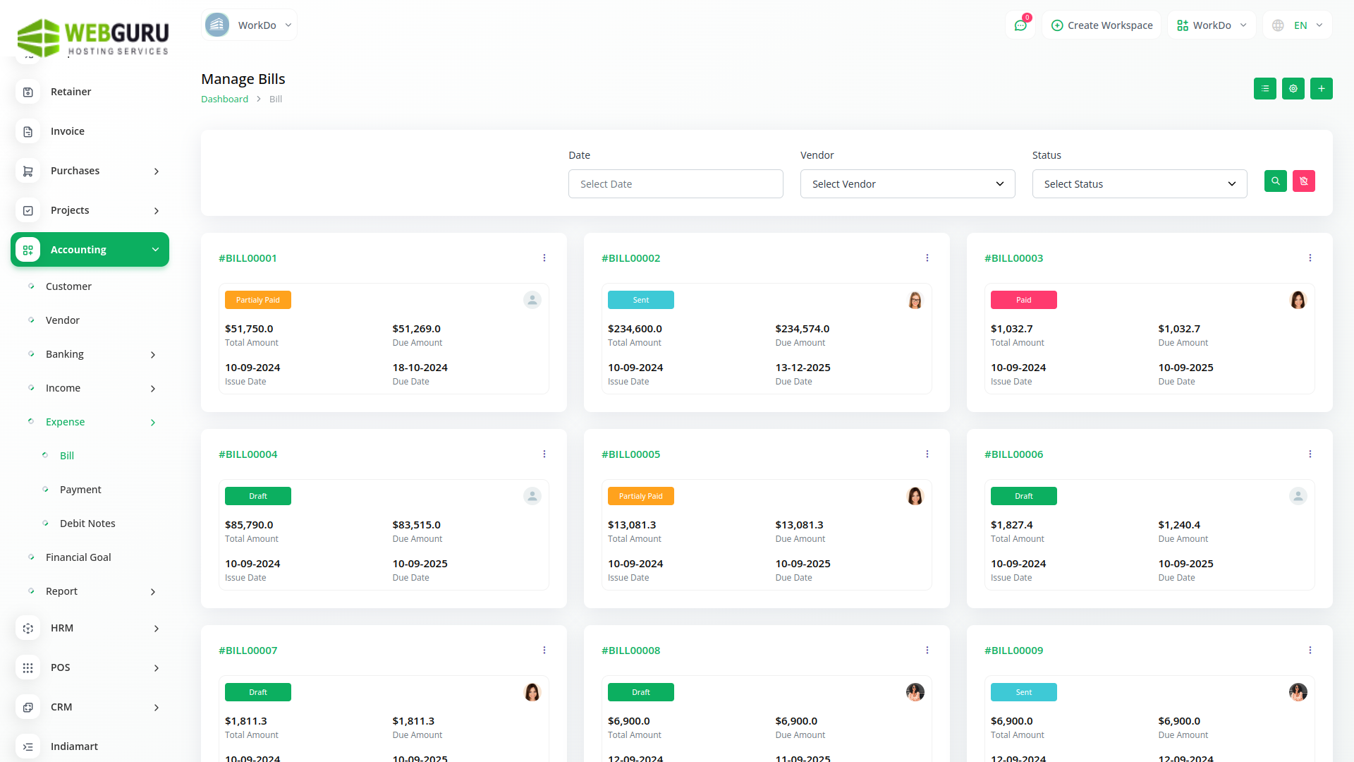 Webguru ERP’s Accounting Module simplifies your entire financial management process with precision and automation. Track income and expenses, manage invoices, reconcile accounts, handle tax calculations, and generate real-time reports—all from one powerful, easy-to-use dashboard. Eliminate errors, streamline workflows, and make informed financial decisions with confidence. With Webguru ERP, your financial operations become faster, clearer, and perfectly aligned for growth.