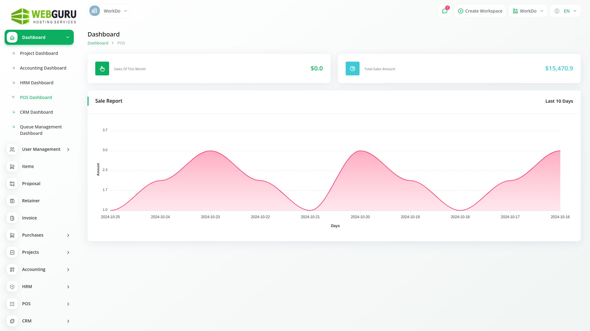 Welcome to the POS Module in Webguru ERP—your all-in-one solution for smooth, efficient, and reliable sales management. Enjoy a clean, user-friendly dashboard that lets you navigate your daily sales activities with ease. At the center of your workspace is a dynamic real-time sales chart, giving you instant insights into your business performance and trends.